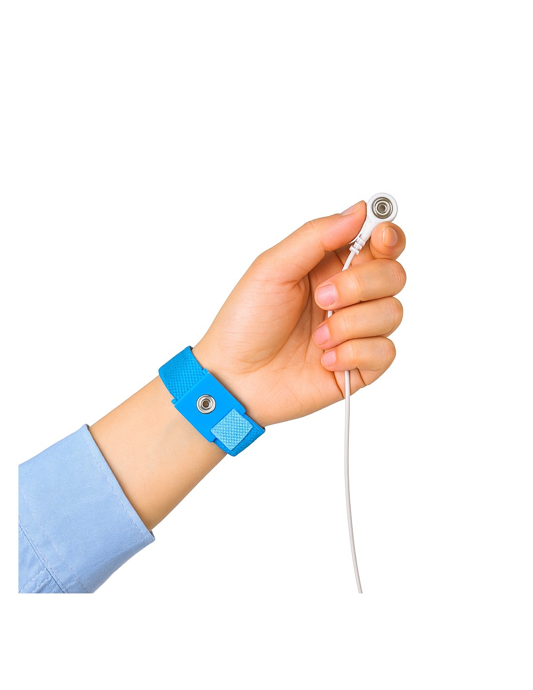 Le bracelet de mise à la terre pour poignet ou cheville est élastique et ajustable. Il est très simple à utiliser et à ajuster. Il contient des fibres conductrices d'argent sur le côté intérieur qui permettent d'assurer la continuité électrique avec votre corps.