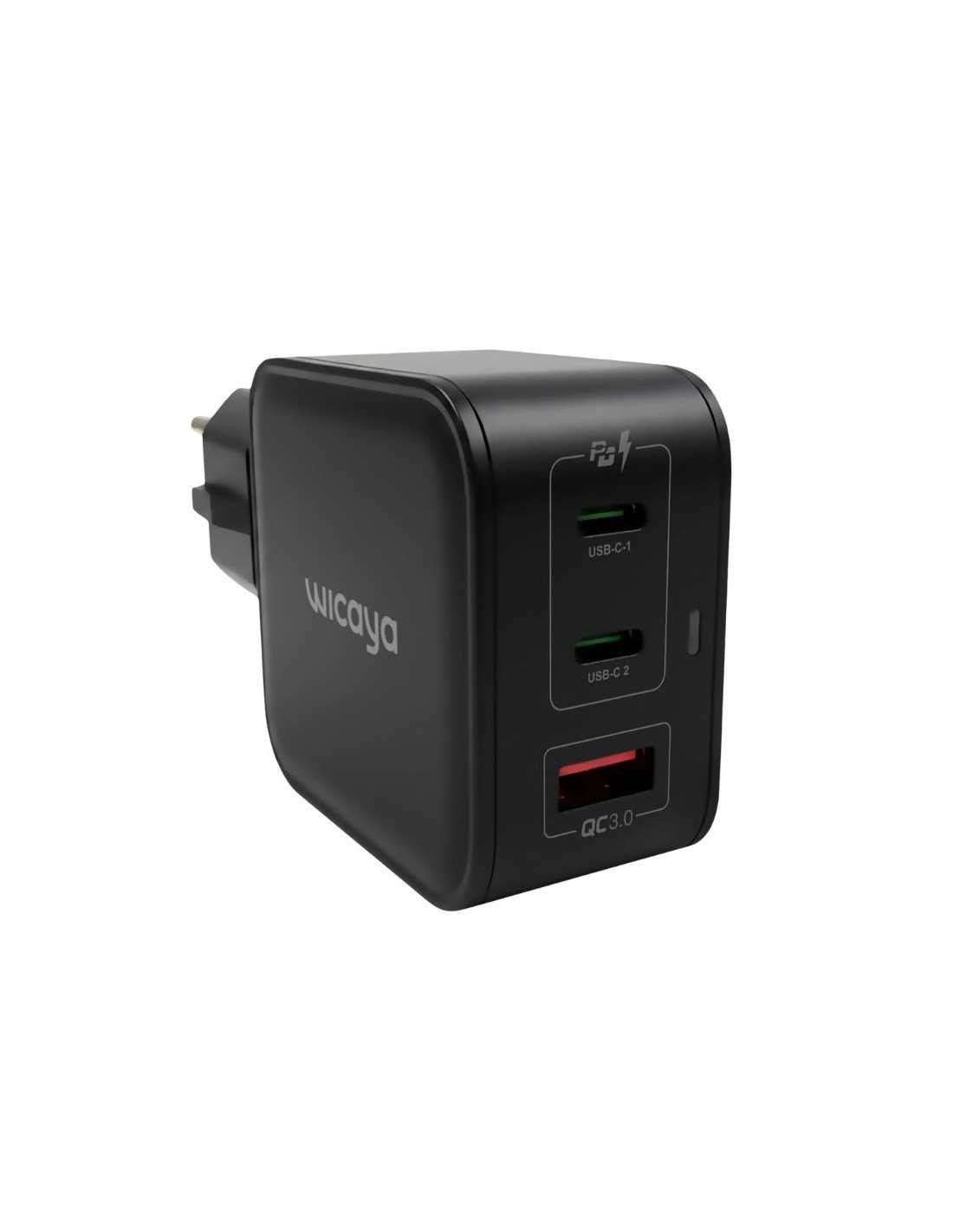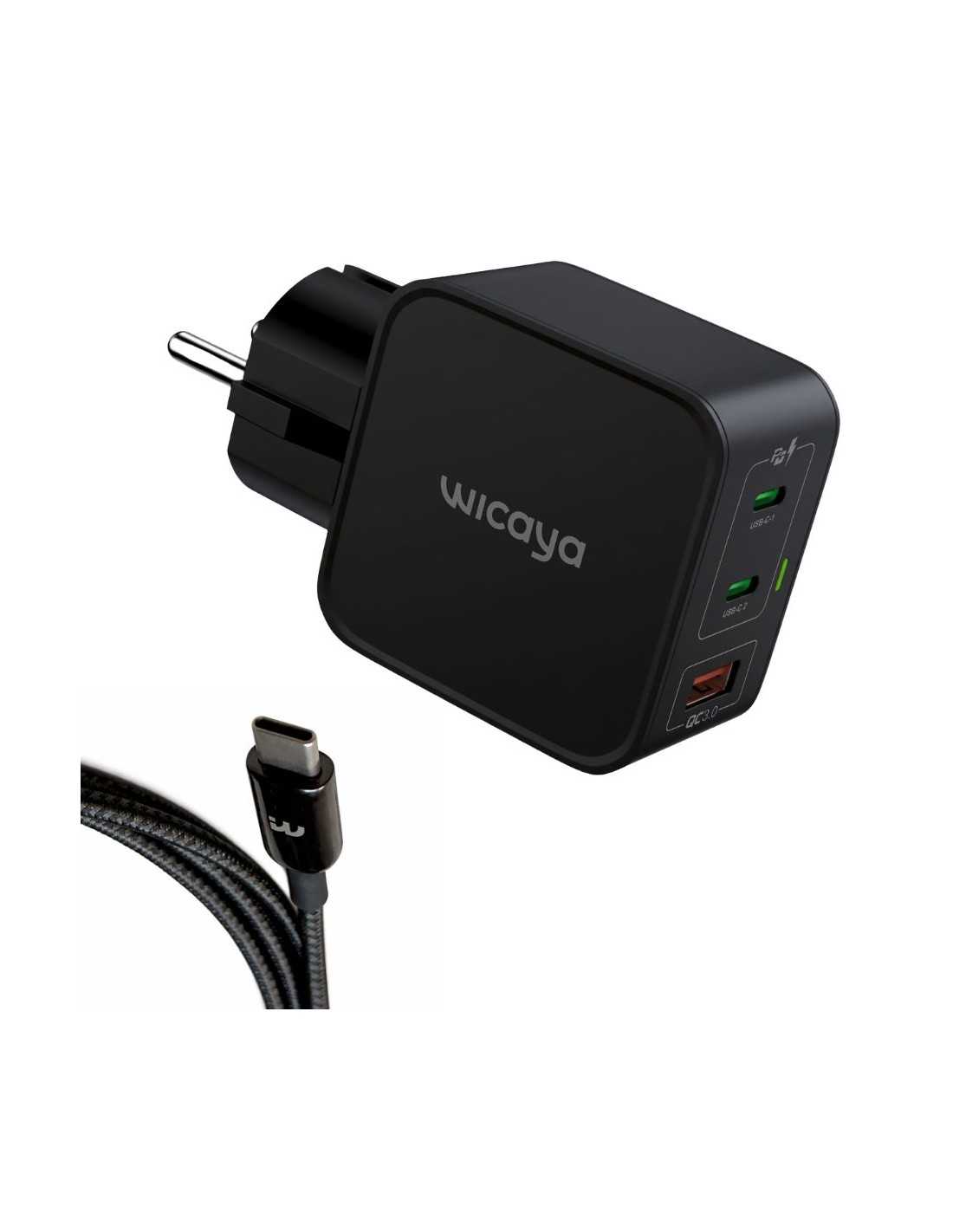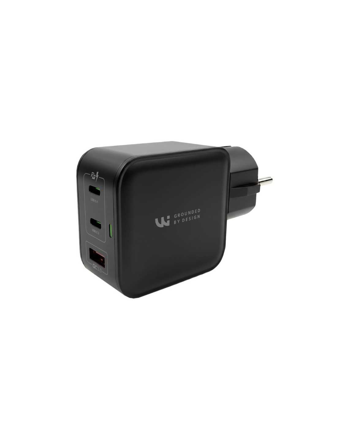 Ce chargeur avec mise à la terre Wicaya de 65W permet de charger les smartphones, les tablettes, les ordinateurs portables, etc, tout en évacuant les champs électriques parasites vers la terre. Grâce à sa technologie GaN et à ses deux ports USB-C et un port USB-A, il offre une charge rapide et polyvalente capable d’alimenter jusqu’à trois appareils simultanément. Sa fiche d’alimentation à 3 pôles permet de supprimer les champs électriques autour des appareils utilisés pendant la charge. Le chargeur est livré avec un câble USB-C de 1 m.
