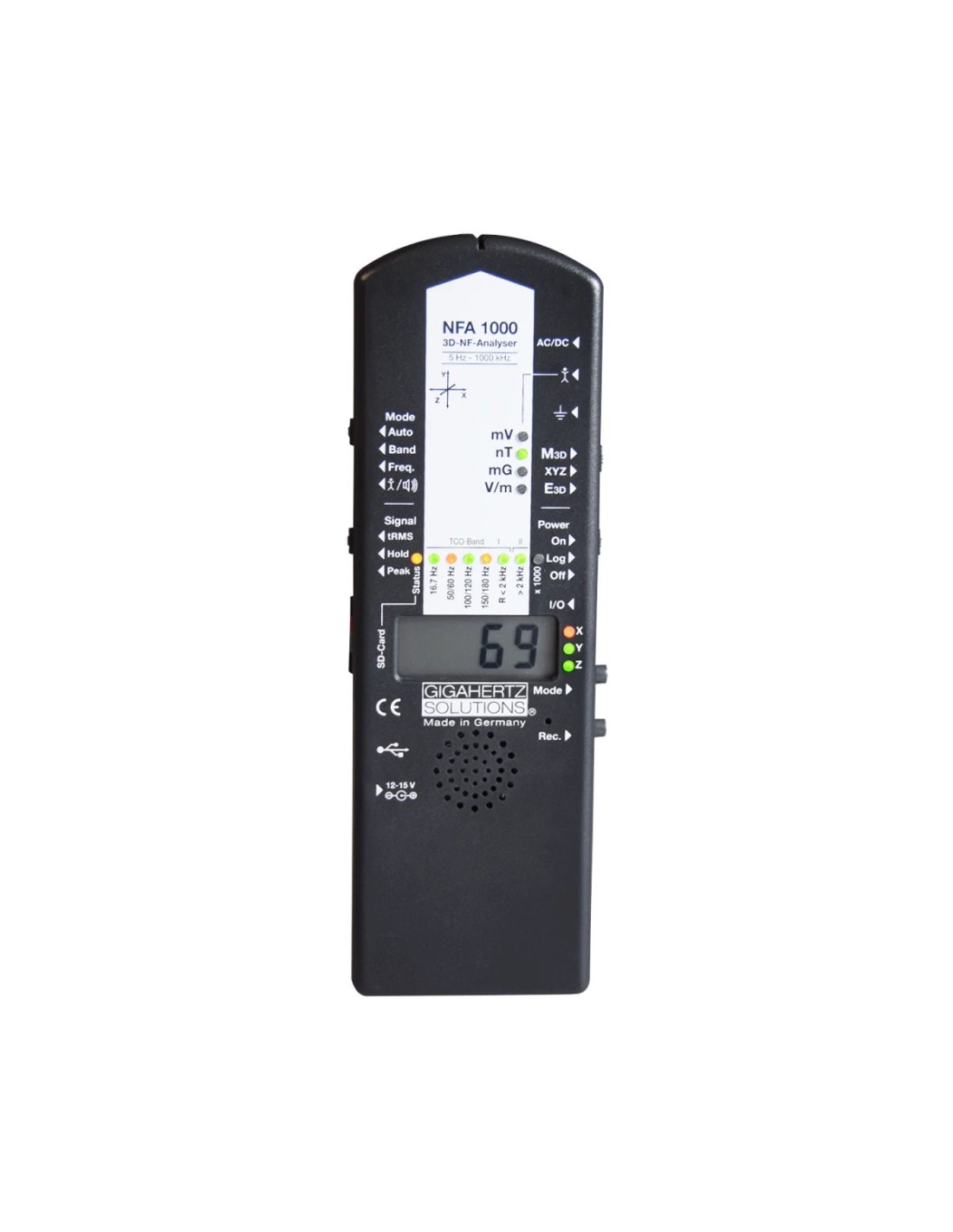 L'appareil NFA-1000 est une alternative innovante à la série ME de Gigahertz-Solutions. Il est basé sur un nouveau concept destiné à mesurer avec une sonde 3D les intensités des champs électriques et magnétiques et d'en faire des enregistrements détaillés sur une longue période si nécessaire. Les nombreux graphiques obtenus pour chaque bande de fréquence permettent une analyse poussée et une présentation professionnelle de vos rapports.