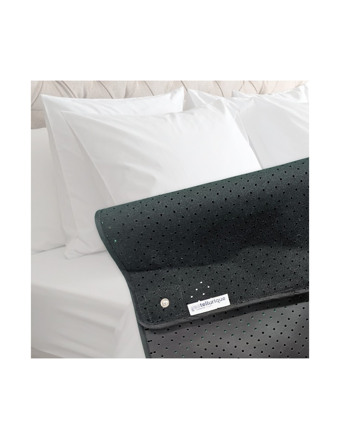 Le couvre-matelas de mise à la terre Geotellurique Double est idéal pour se rééquilibrer la nuit en conduisant la charge électrostatique du corps à travers le fil de terre du circuit électrique, tout en se rechargeant des ions négatifs bénéfiques de la terre. Il neutralise votre potentiel cellulaire avec celui de la terre et réduit instantanément le stress électrique auquel vous êtes soumis quotidiennement. La technologie « earthing » (ou grounding) reproduit le même phénomène naturel de décharge électrostatique que le fait de poser le pied nu sur la terre engendre. Elle vous permettra de mieux dormir, à l'abri de l'électrosmog.