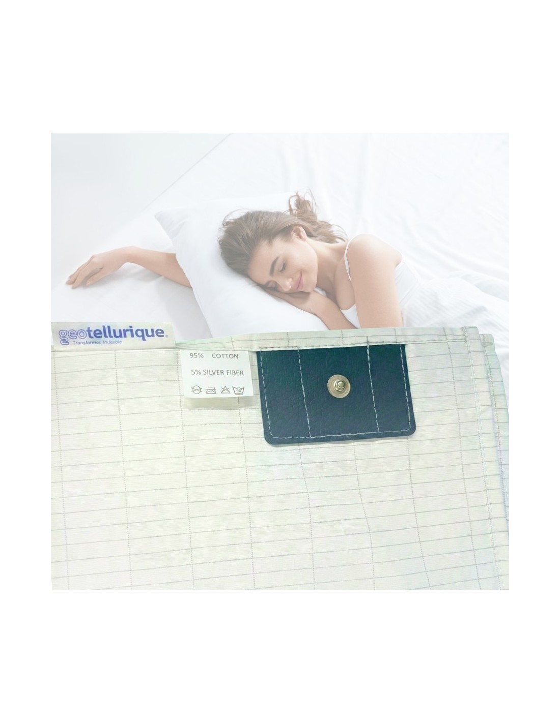 Le drap-housse Geotellurique de mise à la terre pour lit une place 90x200 cm vous permettra de dormir en limitant les effets des pollutions électromagnétiques. Il est composé de coton entrelacé de fibre d'argent. En fonction de la taille, chaque drap contient entre 500m et 1km de fils d'argent.