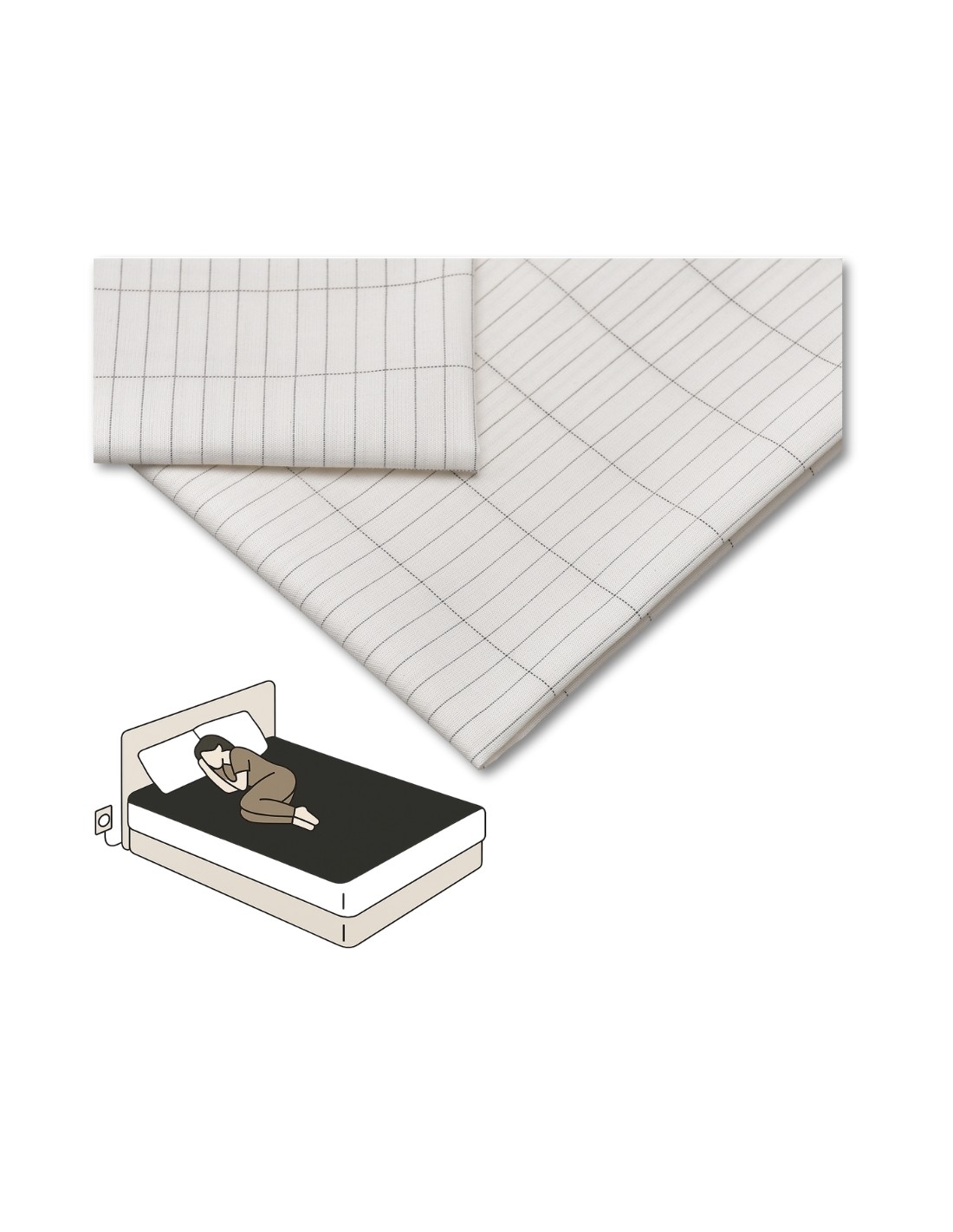 Drap housse de Earthing pour lit deux places 160cm. A placer sur votre matelas en contact avec vous (ou sous votre drap housse habituel) pour dormir à la terre et évacuer votre charge électrique corporelle, pour un sommeil récupérateur tout en profitant des bienfaits de la mise à la terre. Taille : 160x200x30cm.