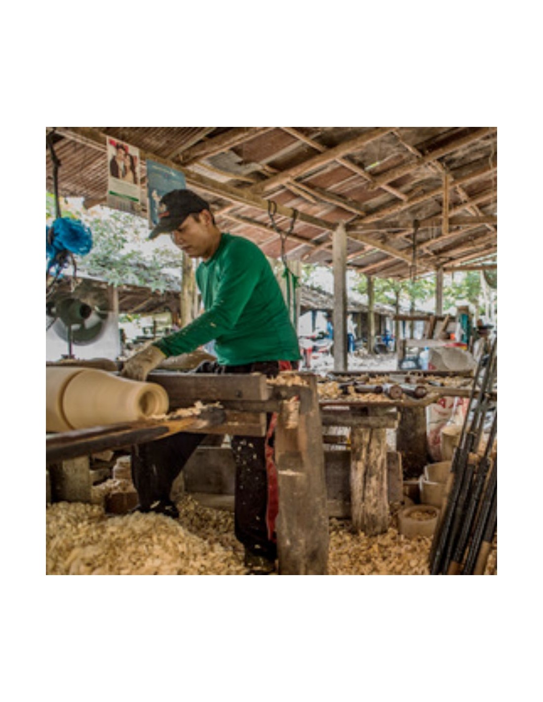 Cet amplificateur de son est fabriqué artisanalement, tourné sur un tour à bois, chaque mangobeat est une pièce unique. Les gravures sont réalisées à la main, au ciseau à bois, par des artisans thaïlandais passionnés.