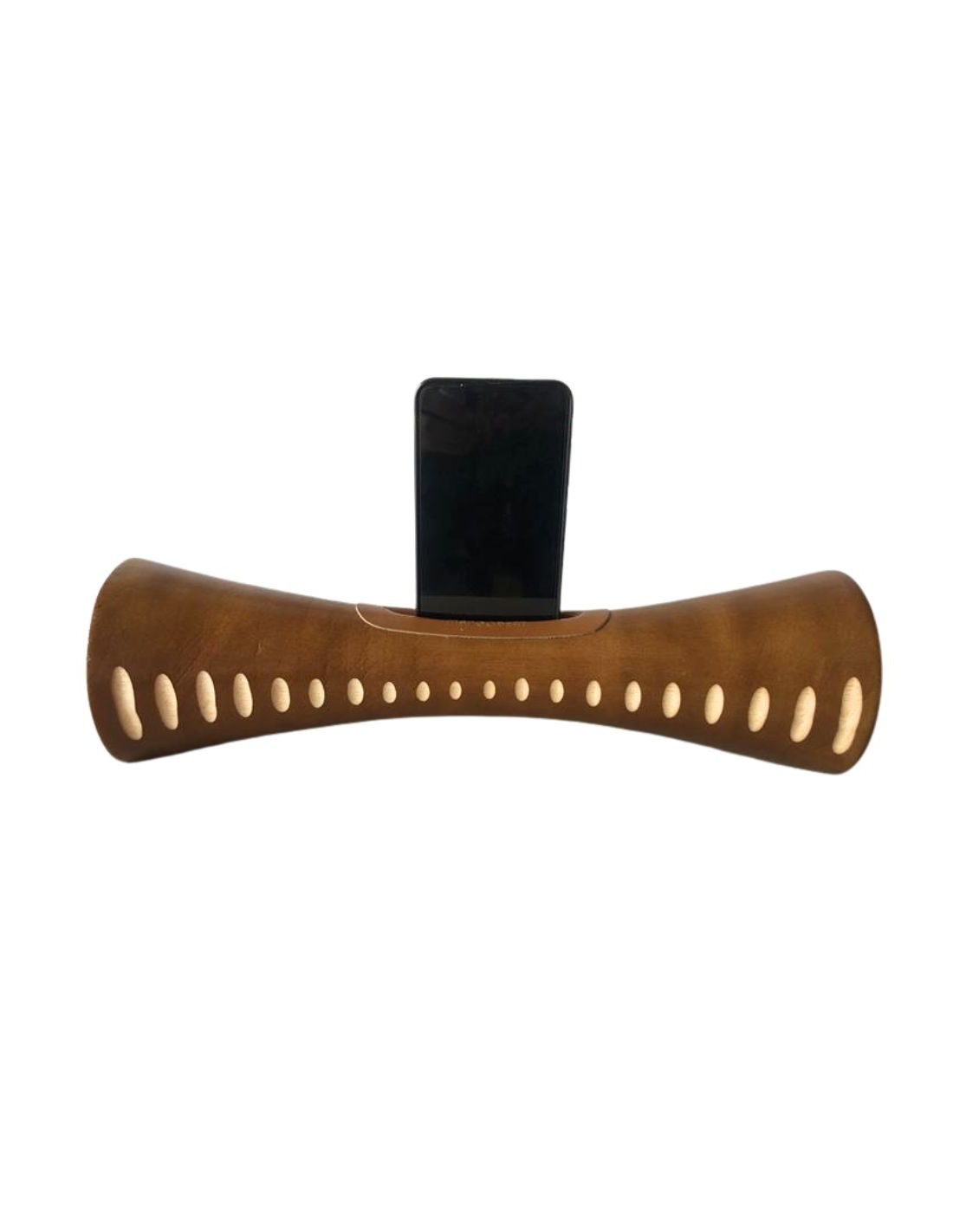 - Glissez votre téléphone dans la fente recouverte de cuir au milieu de l'enceinte