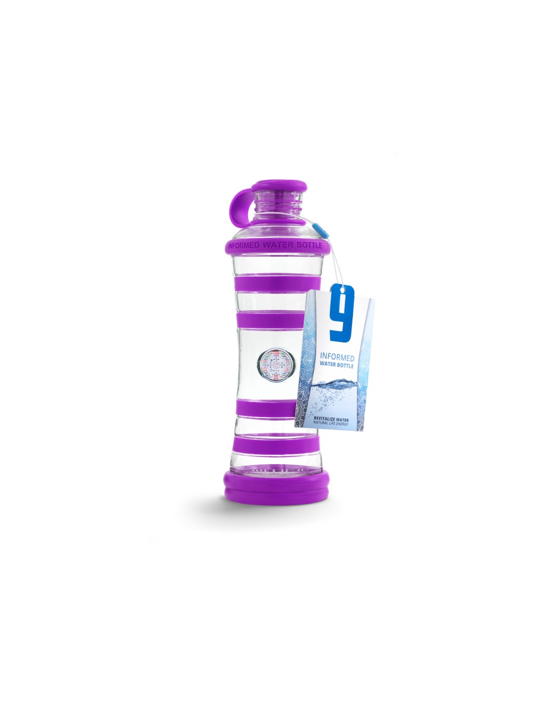 Bouteille i9 magnifiquement conçue, issue de la technologie hydronique, impactant le champs vibratoire et énergétique de l'eau, elle apporte dans votre environnement la sagesse de l'énergie du violet afin de proposer un équilibre au niveau de votre chakra couronne via l'hydro-chromothérapie. Contenance : 650mL.