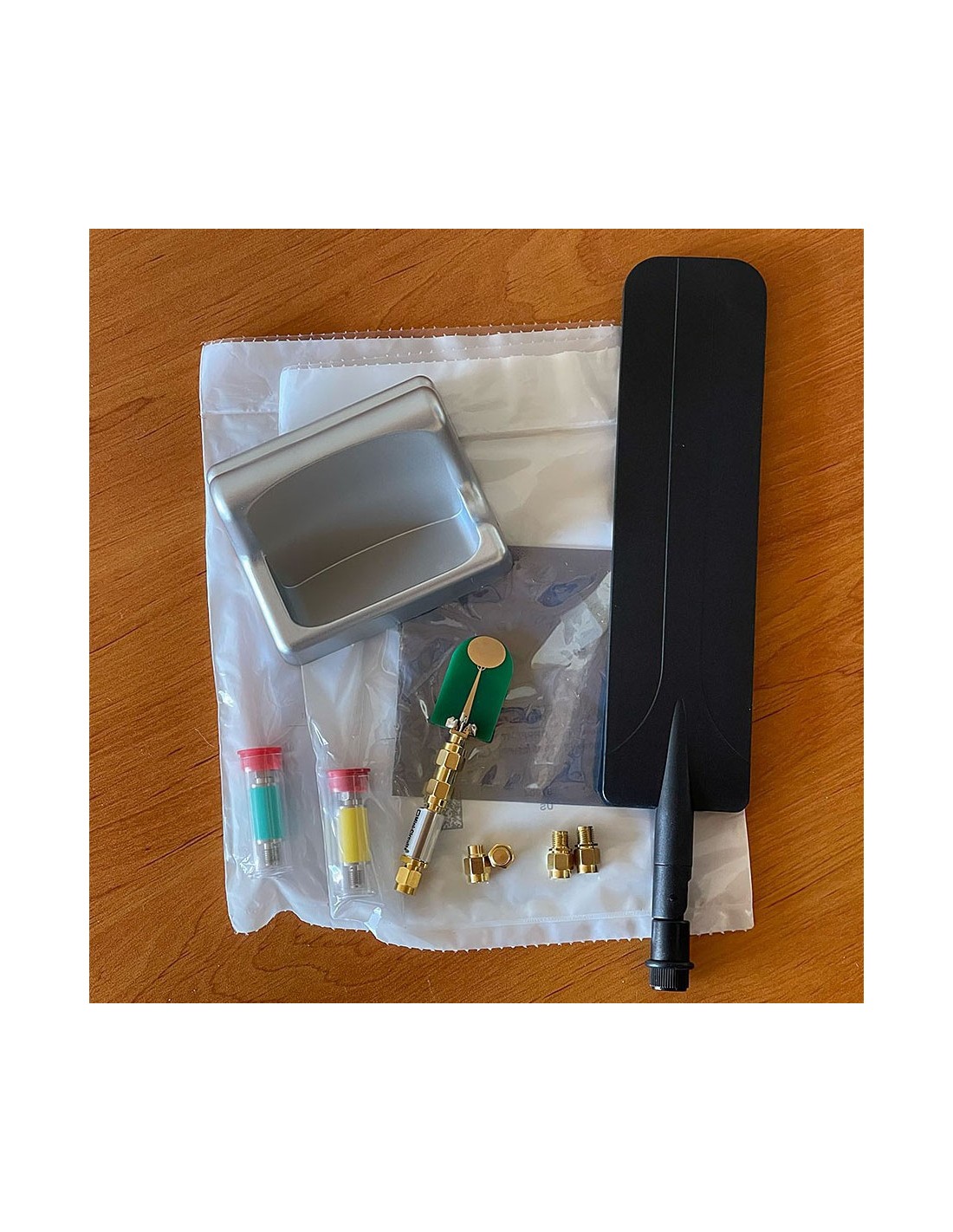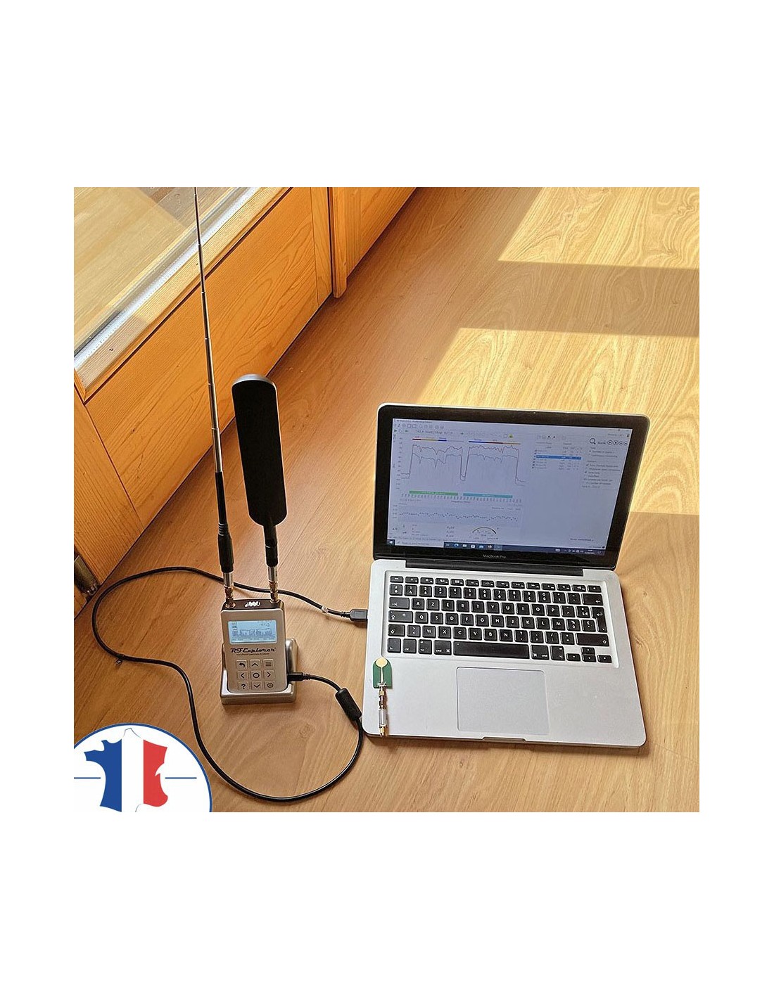 - Un Analyseur de spectre RF Explorer 6G Combo+ Slimpermet de compléter l'analyse des pollutions de hautes fréquences de manière qualitative, pour savoir valider quelles sont les sources présentes et déterminer celles qui influencent principalement le lieu, de 50 KHz à 6,1 GHz. Cette solution nous permet de remplacer efficacement l'ancien filtre FF10 pour l'analyse des différentes sources hautes fréquences présentes. Le RF explorer est fourni avec son kit d'antennes et de filtres assemblés par Geotellurique pendant une formation spécifique durant laquelle sont fournis les deux logiciels experts (sur PC) permettant un usage semi-automatisé de l'ensemble, y compris dans la durée.