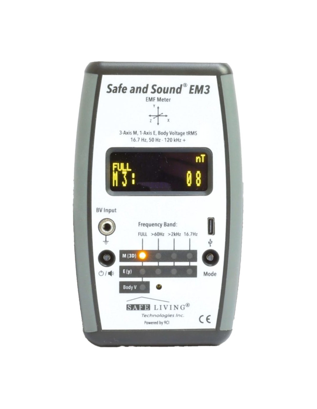 Le Safe & Sound EM3 est un appareil de précision qui détecte des niveaux très faibles dès 0,01 V/m ou 0,01 mG, et peut être paramétré pour afficher les mesures de champ magnétique en nT ou en mG selon les habitudes de l’utilisateur. Grâce à une électronique soignée et une interface claire rétro-éclairée, le Safe & Sound EM3 permet d’intervenir efficacement dans tous les contextes : domiciles, écoles, bureaux, hôpitaux, crèches, ou zones à proximité d’infrastructures électriques. Mesure les champs électriques jusqu'à 400 KHz (compatible normes TCO) et 120 KHz pour le champ magnétique en mode 3D, ce qui est un réel plus pour des mesures sous une ligne à HT…