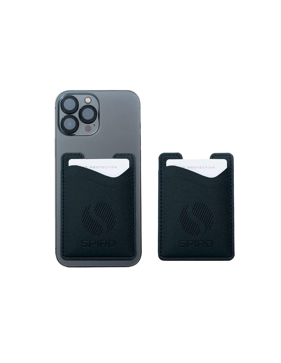 Fixer le porte-cartes sur une surface plane d’un téléphone ou d’une coque, puis insérer la carte Spiro® et/ou d’autres cartes. Idéal pour les utilisateurs de technologies bien-être Spiro®.