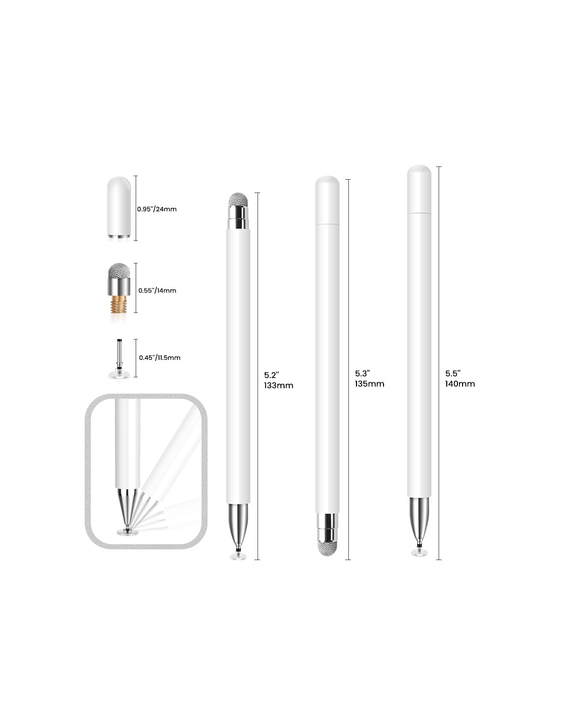- Deux embouts complémentaires : Embout fibre pour une glisse douce au quotidien, embout disque transparent pour une grande précision (saisie fine, sélection de petites icônes, signatures, etc.).