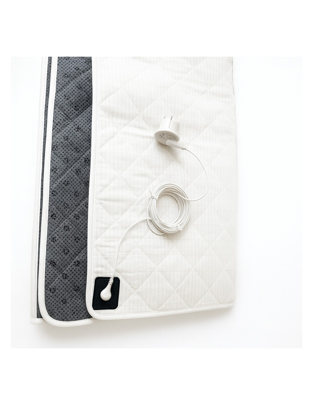 Ce tapis confortable et conducteur permet de rester en contact avec la terre sur votre canapé, votre lit ou comme zone de jeu quiétude pour votre enfant. Il se connecte à la prise de terre de votre logement grâce au cordon fourni, reproduisant le phénomène naturel de mise à la terre.