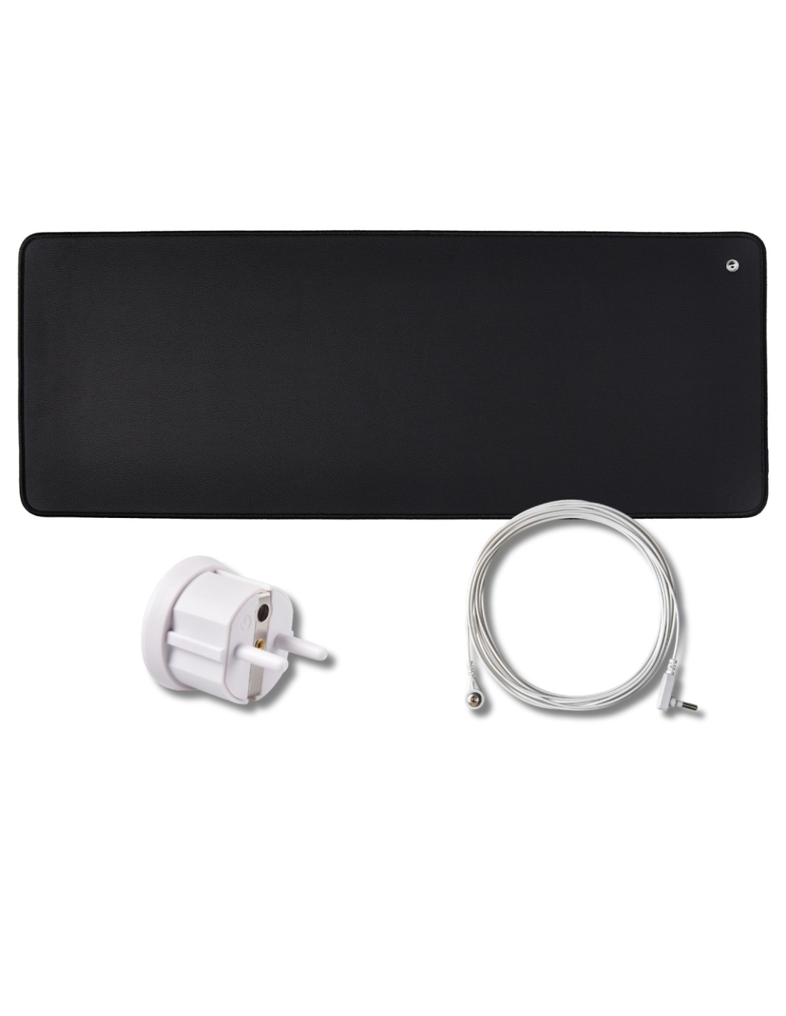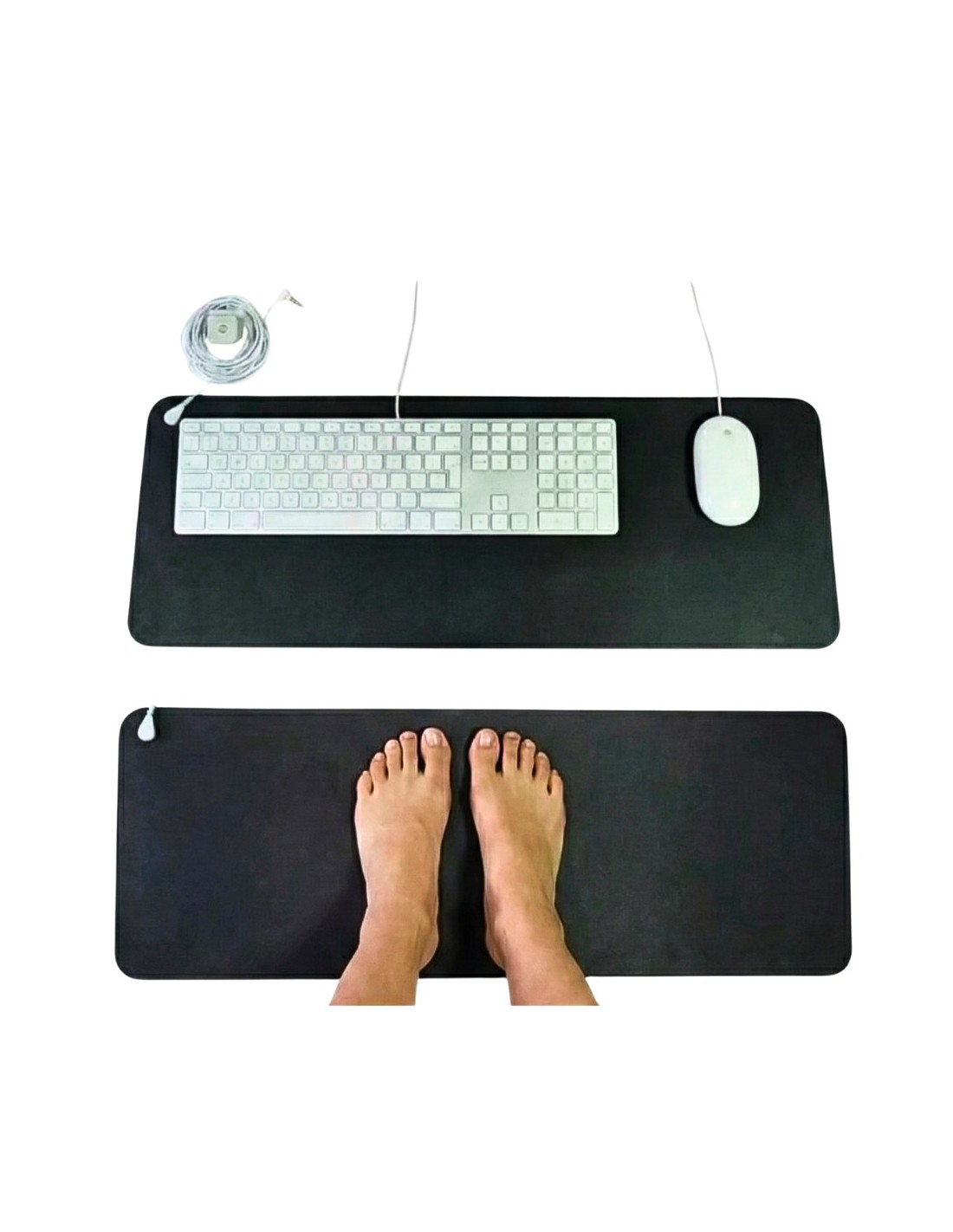 Ce tapis de Earthing pour le bureau vous permet d'être relié à la terre lorsque votre peau est en contact avec celui-ci. Idéal pour rééquilibrer votre potentiel avec celui de la terre et limiter le stress électrique auquel vous êtes soumis quotidiennement. Exemple d'usage : A placer comme sous mains lorsque l'on travaille sur ordinateur. Taille : 68x25cm.